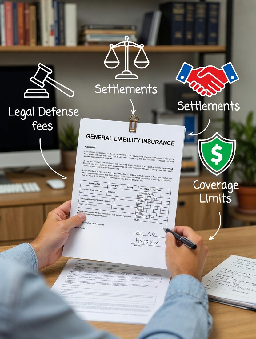 General liability insurance protects your business if customers or vendors are injured on your property or if your operations cause property damage. It typically covers legal defense costs, settlements, and judgments.
